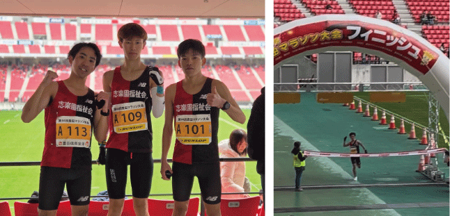 12月14日、雨上がり無風の絶好のコンディションのなか、豊田スタジアムにて第44回 豊田マラソン大会が開催されました。楽園陸上倶楽部からは井上・神里・山本の3選 手がエントリーしました。メインとなる10km競技において、井上雄斗主将(藤岡の楽園 )がスタートから首位をキープし、昨大会に続き3度目の優勝を飾りました! 3選手の 「志楽園福祉会」の軽快なユニフォーム姿が今年も豊田市内を颯爽と駆け抜けました ♪