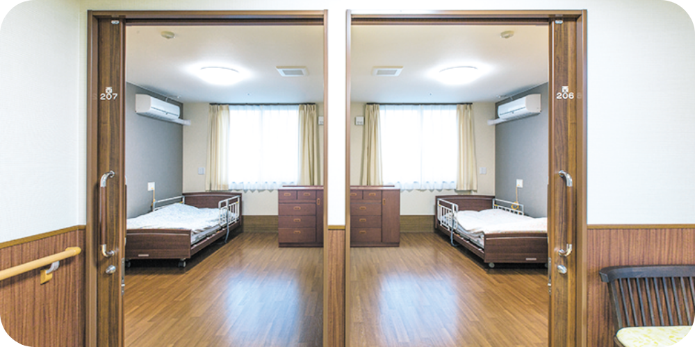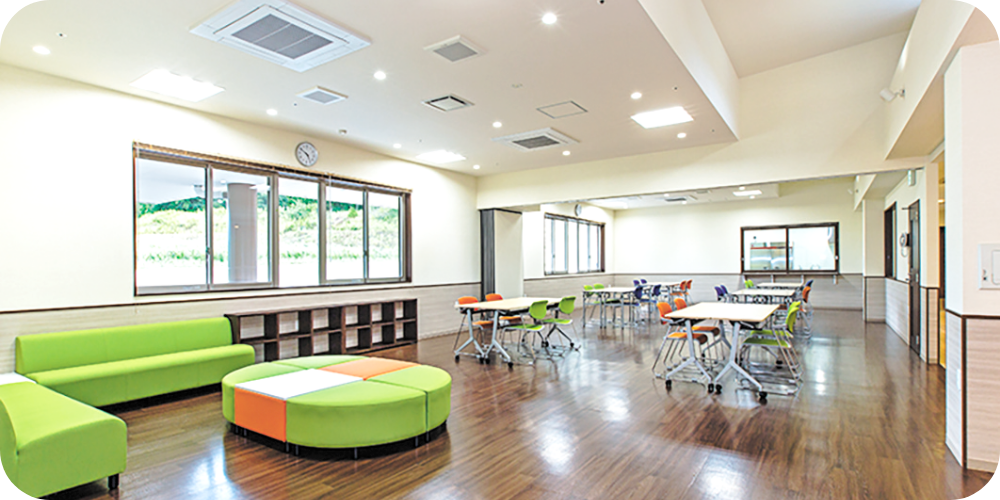 「藤岡の楽園」は、猿投山の麓に広がる桃畑や緑の木々に囲まれた静寂の地に佇みます。職員と入居者の方が、食事やおやつ、季節の行事などの日常生活をともにすることで、顔なじみに囲まれた家庭的な雰囲気の中で楽しく生活することができます。 施設はプライバシーが保たれるよう全室個室のユニットケア方式を導入。ユニット入居者全員が食事を楽しんだり、和やかに談笑できる共同生活室を用意しました。「ありがとう。あなたに逢えてよかった」と言われるように、私たちは精一杯生活支援をさせていただいております。